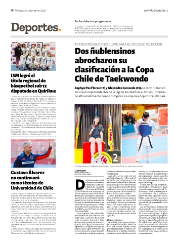 Gustavo Álvarez adelantó que dejará la banca de Uni- únicos representantes de Ñuble en dentro de los cuatro mejores. cia, dar lo mejor y dejar una buena