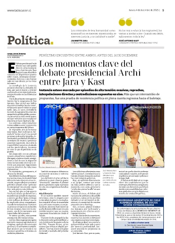 tributaria como ejes para atraer in- reforzado y acusó a Kast de querer Kast, sin referirse directamente por medio de una El debate Archi dejó así un mapa