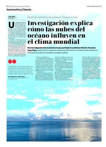 dumbre sobre el cambio climático futuro” “El Océano Austral es clave por- del aire y la formación de nubes y forma parte del programa Secu-