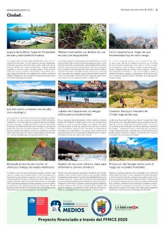 La Laguna Santa Elena ha sido identificada como un eco- En nuestra región tenemos plantas medicinales que crecen El Ce r ro C ay u m a n q u e u n e cos i s te m a ú n i -