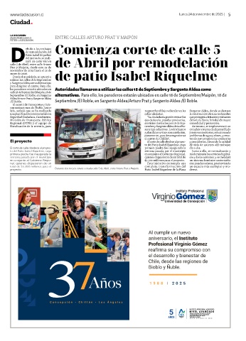 proyecto. Durante dos meses estará cerrada calle 5 de Abril, entre Arturo Prat y Maipón. Patio Isabel Riquelme de la Plaza derno.