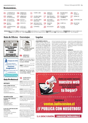 01 . COMPRAVENTA Económicos: Valor con IVA por palabra Corriente: $100 - Destacado: $ 162 - Súper Destacado: $ 201 (min 10 - máx. 30 palabras) 26 . ANIMALES 17