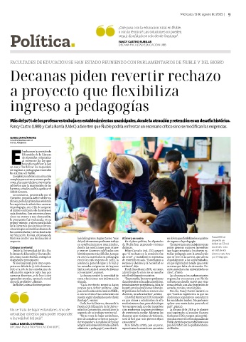 respecto. del 50% de nuestros profesores trabaja En el plano político, los diputados de ingreso a la pedagogía. proyecta un