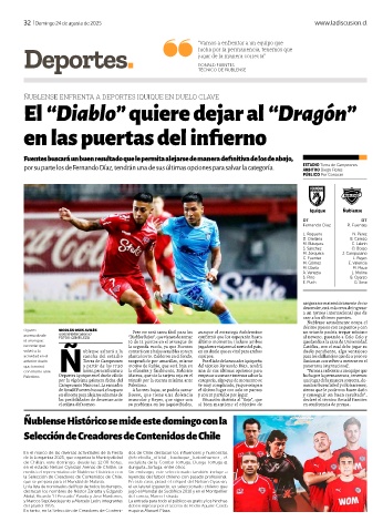 volvió a la ublense saltará a la contará con 3 bajas sensibles con un en un duelo que es vital para ambos duelo pendiente, algo ventajoso