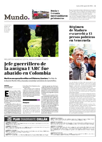 AGENCIAS lidera Néstor Vera Fernández, alias Sánchez agregó que el jefe gue- italiana—, y otros cinco con arresto domiciliario, según