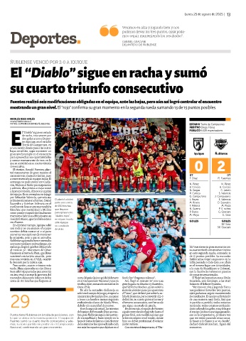 nacional, confirmando un gran momento. vez más los espacios que dejaban en el Con este triunfo importante, el “Dia- encuentro.