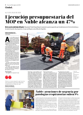DiPUtADo PoR ÑUBLE tra región, sino que a nivel nacional”, y que por falta de efectivo hoy no estén directa de Vialidad”.