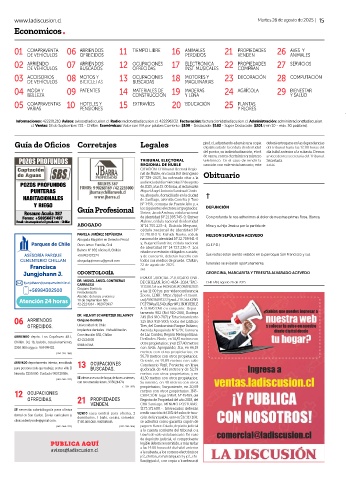 01 . COMPRAVENTA Económicos: Valor con IVA por palabra Corriente: $100 - Destacado: $ 162 - Súper Destacado: $ 201 (min 10 - máx. 30 palabras) 26 . ANIMALES 17