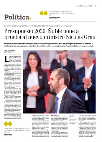 a los recortes que hemos sufrido el discrecional y centralista”, reclamó. Dudas sobre Grau Grau pasó la inversión. Ñuble no puede quedar