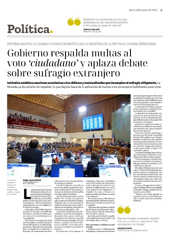 proyecto que a próxima semana la Cámara rando la discusión de las multas por al no apoyar el voto obligatorio”. Y al permitir sufragio presidencial sin