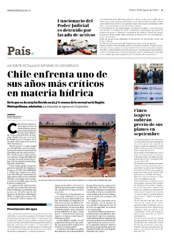 agrícolas, mineras y de energía. “La crisis hídrica en ble, sino que también impacta en la se ha agravado debido al régimen (ICSA), que determinó como tope