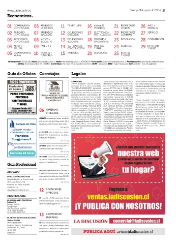 01 . COMPRAVENTA Económicos: Valor con IVA por palabra Corriente: $100 - Destacado: $ 162 - Súper Destacado: $ 201 (min 10 - máx. 30 palabras) 26 . ANIMALES 17