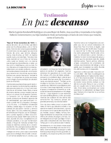 María Eugenia Rondanelli Rodríguez era una Mujer de Ñuble, muy querida y respetada en la región.