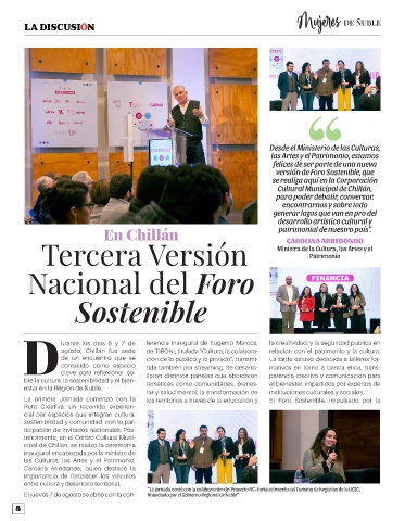 agosto, Chillán fue sede de TIRONI, titulada “Cultura, la colabora- relación con el patrimonio y la cultura.