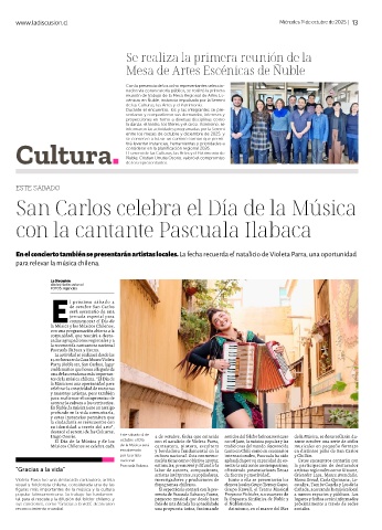 por la artista cultura nacional. Esta conmemo- internacionales, Pascuala ha sido y Chillán.