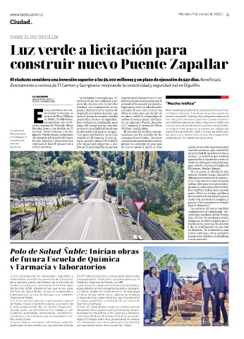 Eacompañado por el di- Este viaducto se emplazarán agua de un esperado Puente Zapallar uno definitivo para el uso diario. Hay mucho tráfico en
