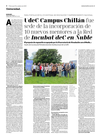Esta vinculación se enriquece con las base científico-tecnológica”. mentora tras una exitosa trayectoria de Región de Ñuble, ya que, como escu-