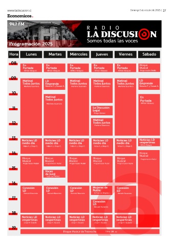 www.ladiscusion.cl Domingo 5 de octubre de 2025 27 Economicos Bloque Musical Bloque Musical Bloque Bloque Bloque Bloque Bloque Musical Musical Musical Musical Musical Bloque Musical de Trasnoche 19 PM 08 AM