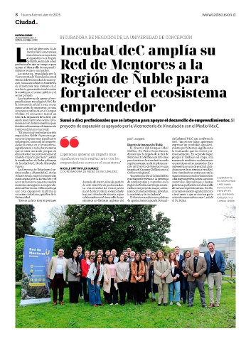 de IncubaUdeC, Nicole Dättwyler emprendedores como en el ecosistema” región y avanzar en la implementa- es participar en las mentorías. Esto