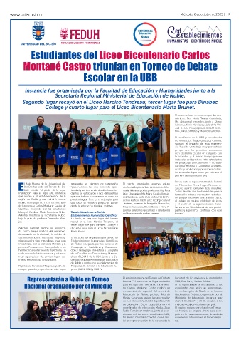 Ebate Escolar “El poder de la argu- tunidad y un tremendo desafío. Las estu- cuela, lideradas por las profesoras Mg. Rosa “Estos debates son fundamentales para la
