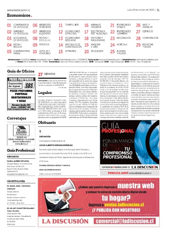ARRIENDO 06 . OFRECIDOS 11 . TIEMPO LIBRE 16 . PERDIDOS 21 . VENDEN Martes 18 de febrero de 2020 17