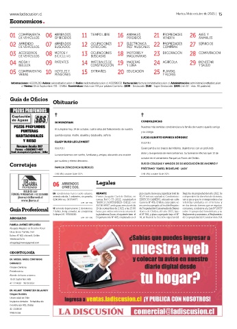 ARRIENDO 06 . OFRECIDOS 11 . TIEMPO LIBRE 16 . PERDIDOS 21 . VENDEN Martes 18 de febrero de 2020 17