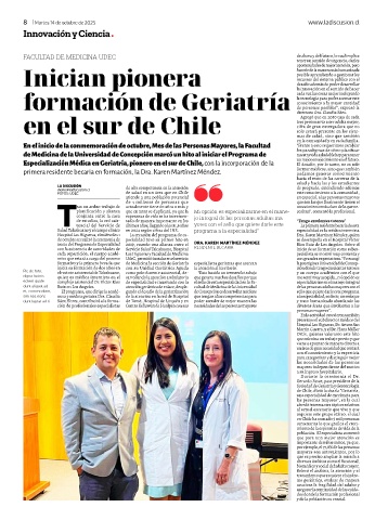 formativo y la primera becada que de Medicina la sección de Geriatría especialistas geriatras que acercan la prestigiosa Universidad de Concep-