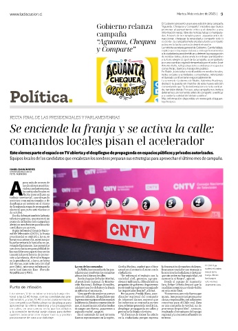 Este viernes 17 de octubre se inicia la franja elec- “Creo que el 17 de octubre va a ser un Por su parte, Freddy Blanc, coor- “Entraremos con más fuerza que