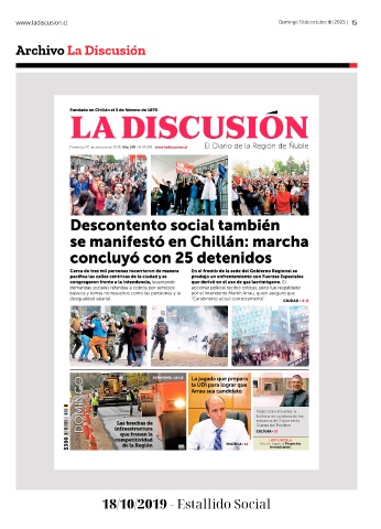 www.ladiscusion.cl Domingo 19 de octubre de 2025 15 Archivo La Discusión 18/10/2019 - Estallido Social