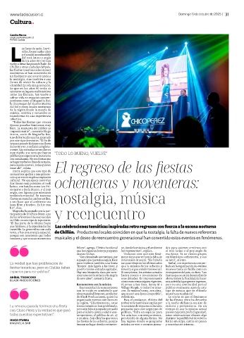 tema, y hay una energía especial, de Chillán. Productores locales coinciden en que la nostalgia, la falta de nuevos referentes