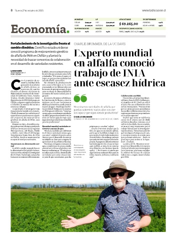 centro sur del país. escasez de agua”. Añadió que los efec- Necesitamos variedades de alfalfa que ambas instituciones. “Precisamente
