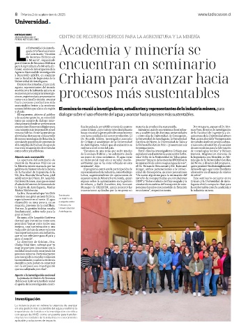 escasez hídrica que afecta a la región El seminario reunió a investigadores, estudiantes y representantes de la industria minera, para