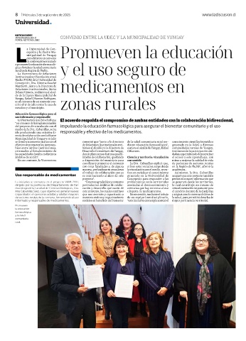 objetivo de promover los intercam- de Relaciones Institucionales reci- diante educación farmacológica”, generado en la UdeC a diversas