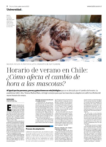 académica UdeC, Dra. Yessica Muñoz Mora, entregó consejos para que las mascotas se adapten sin sufrir los efectos del