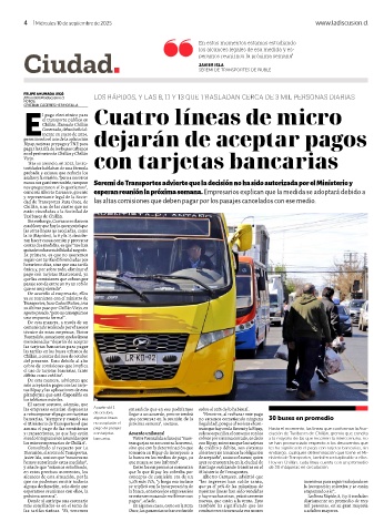 siendo íntegramente asumidas por bancarias. Víctor Fuenzalida aclara que “nues- cobros por sistema cerrado, es decir a la mayoría de las que recorren la intercomuna, no