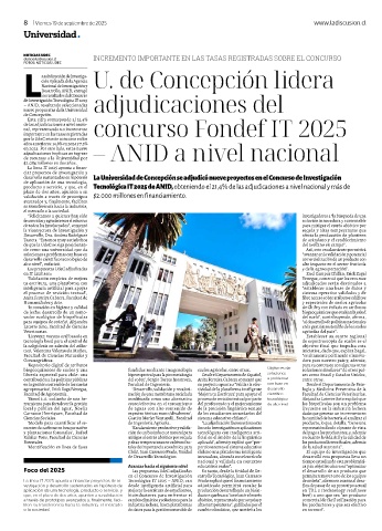 Foco del 2025 Las propuestas UdeC adjudicadas En tanto, desde la Unidad de De- el desarrollo de un producto que