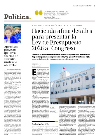 do según el tamaño de la empresa. plan de ajuste fiscal del Gobierno, que busca Recorte a Gobiernos Regionales “Si es por vulnerabilidad y em-