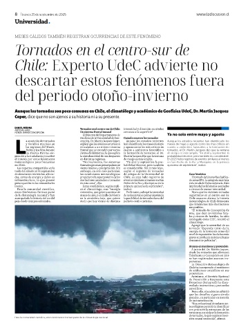 Aunque los tornados son poco comunes en Chile, el climatólogo y académico de Geofísica UdeC, Dr. Martín Jacques