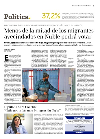 con 124 y Quillón con 128. En el rango La presencia migrante, aunque