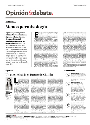 Propietario: Empresa Periodística La Discusion S.A. • Correo electrónico: [email protected] • Sitio web: www.diarioladiscusion.cl •