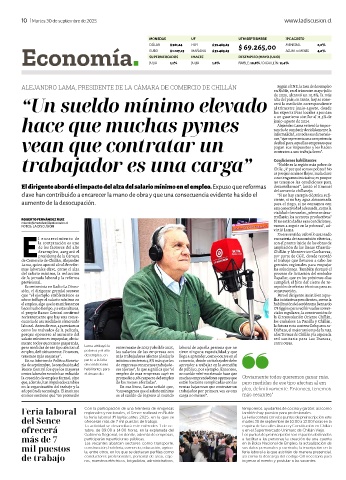 ALEJANDRO LAMA, PRESIDENTE DE LA CÁMARA DE COMERCIO DE CHILLÁN Según el INE, la tasa de desempleo