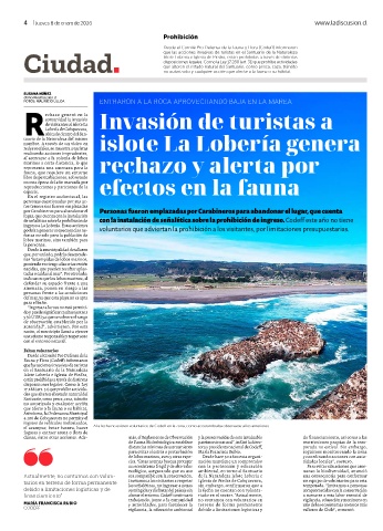 Ciudad. que las acciones invasivas de turistas en el Santuario de la Naturaleza