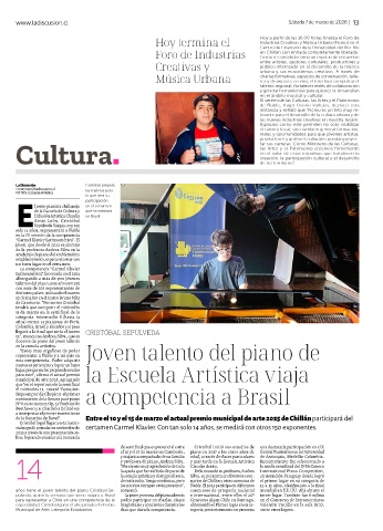 años tiene el joven talento del piano Cristóbal Se- comentó. concursos de categoría nacional mundial en EE.UU. Ahí obtuvo el